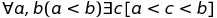 With multiple generality — the great Fregean innovation — we can define denseness quite easily (continuity can then be defined with the more complex constructions offered by Dedekind or Cantor). With some linear ordering, <, we can say that for any pair of distinct points ordered by < there is a third point between them. But we then need one quantifier to fall within the scope of the other: